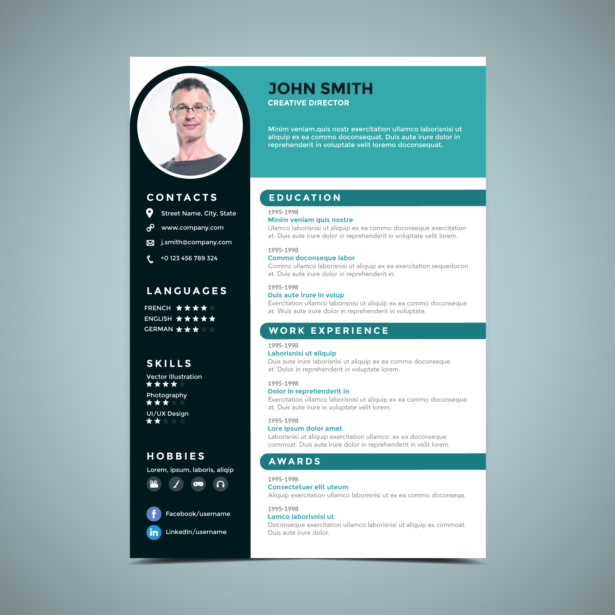 Creative Cv Or Resume Template Teal Green Background Color Cool